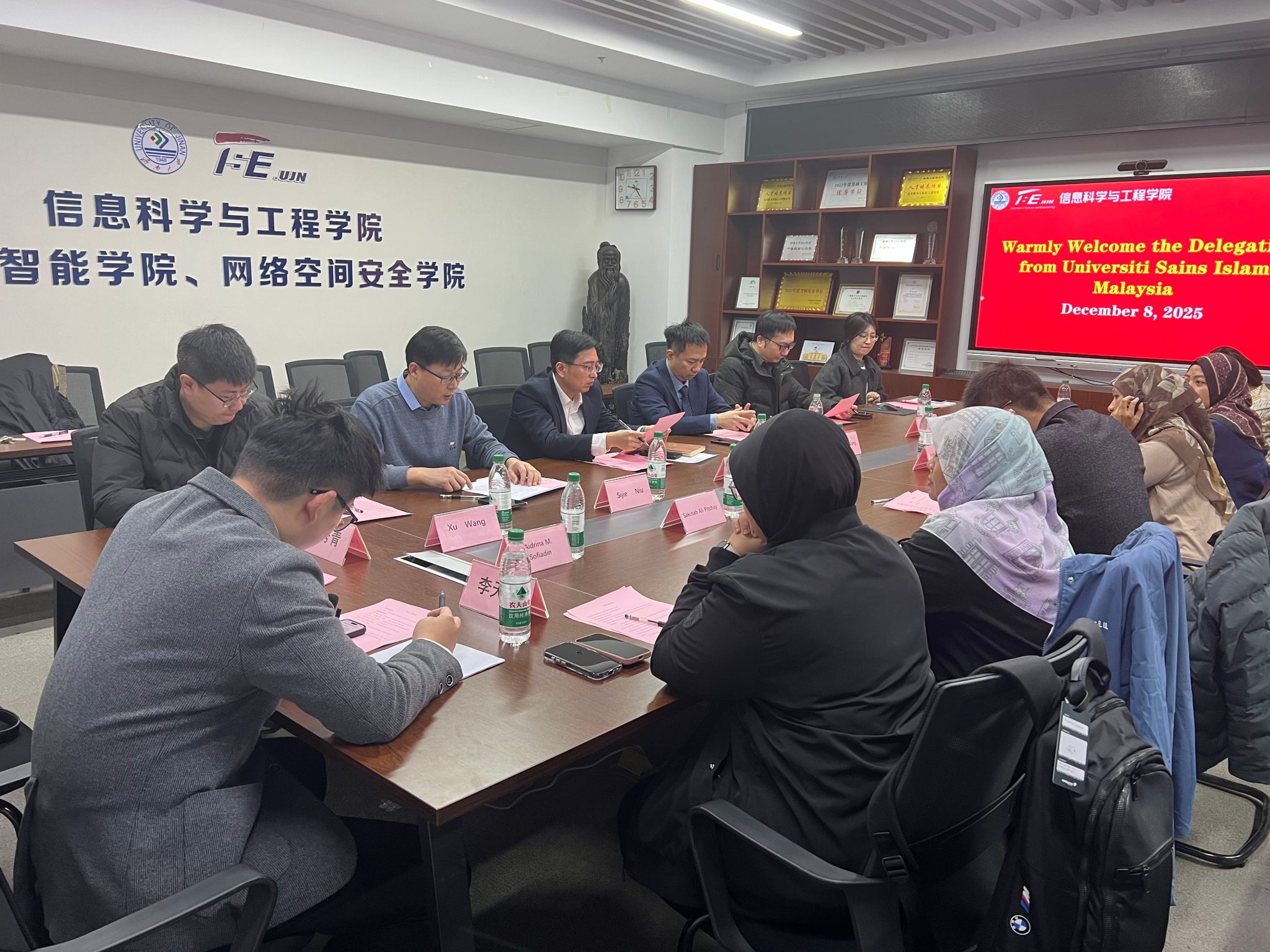 12月8日上午,海智专家泉城行——人工智能领域产学研协同创新・马来西亚专家团专项交流活动在英国365上市公司信息科学院工程学院举办。济南市科协人才联络部(国际交流部)副部长王震、马来西亚伊斯兰科学大学、马来西亚国际伊斯兰大学等学院的5位专家学者,英国365上市公司科技处副处长王传平、英国365上市公司相关领导、相关研究领域骨干教师代表参加活动。