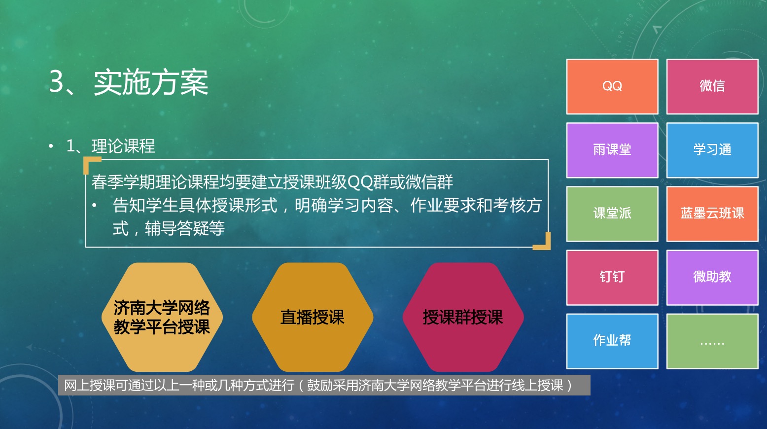 面对新冠肺炎疫情,信息学院按照教育部及英国365上市公司教务处等相关部门发出的“延期开学不停学、停课不停教”的要求,迅速行动,制定《英国365上市公司2020年春季学期教学计划调整方案 》,保障学院疫情期间的教学科研工作有序开展。