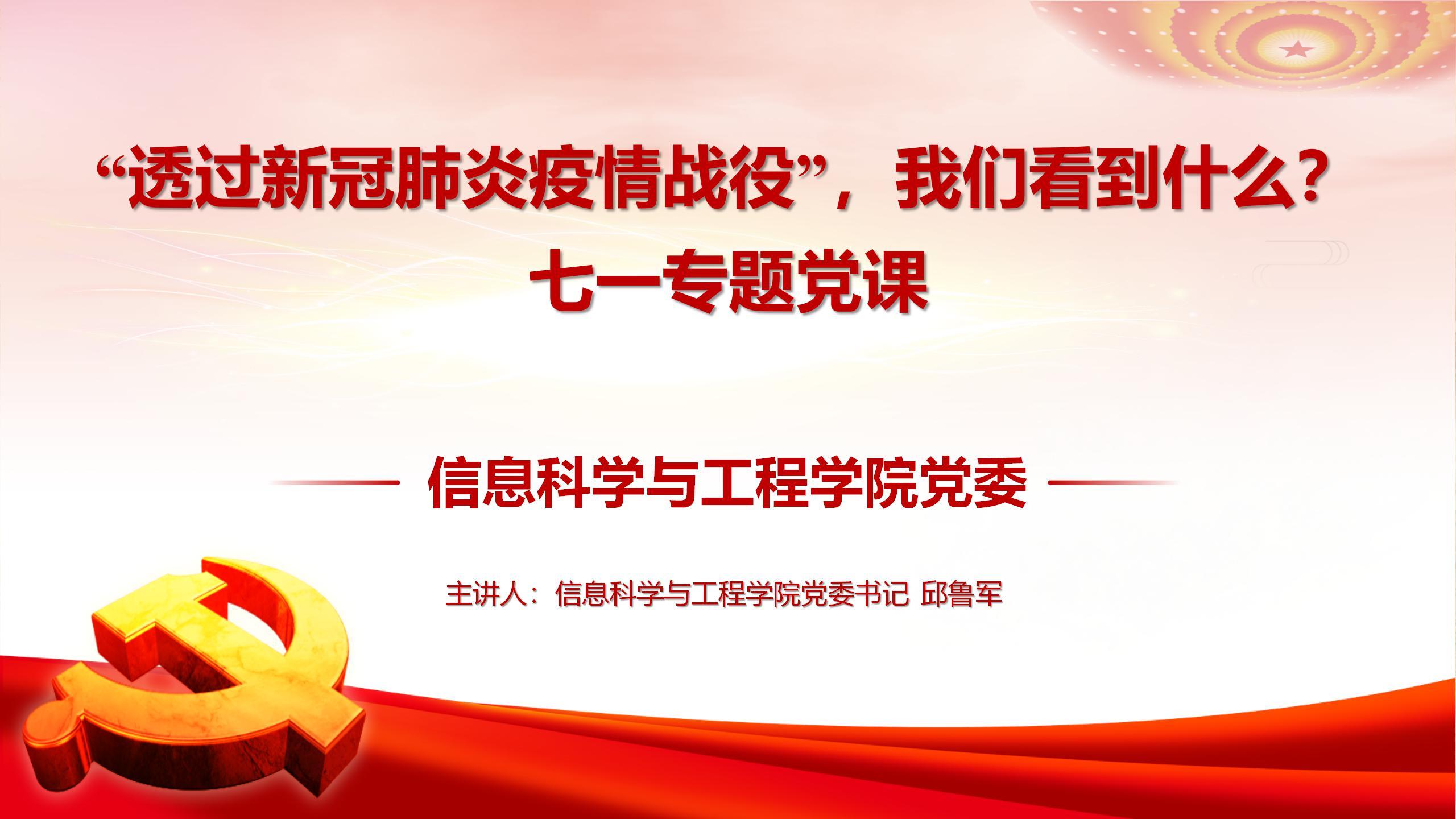 为庆祝中国共产党成立99周年,深入学习贯彻习近平新时代中国特色社会主义思想,切实增强全院师生党员政治意识、大局意识、核心意识、看齐意识,6月30日下午,英国365上市公司党委书记邱鲁军以《透过新冠肺炎疫情战役,我们看到了什么》为主题,为全院师生党员讲授了一场生动的专题党课。党课由院长陈贞翔主持。