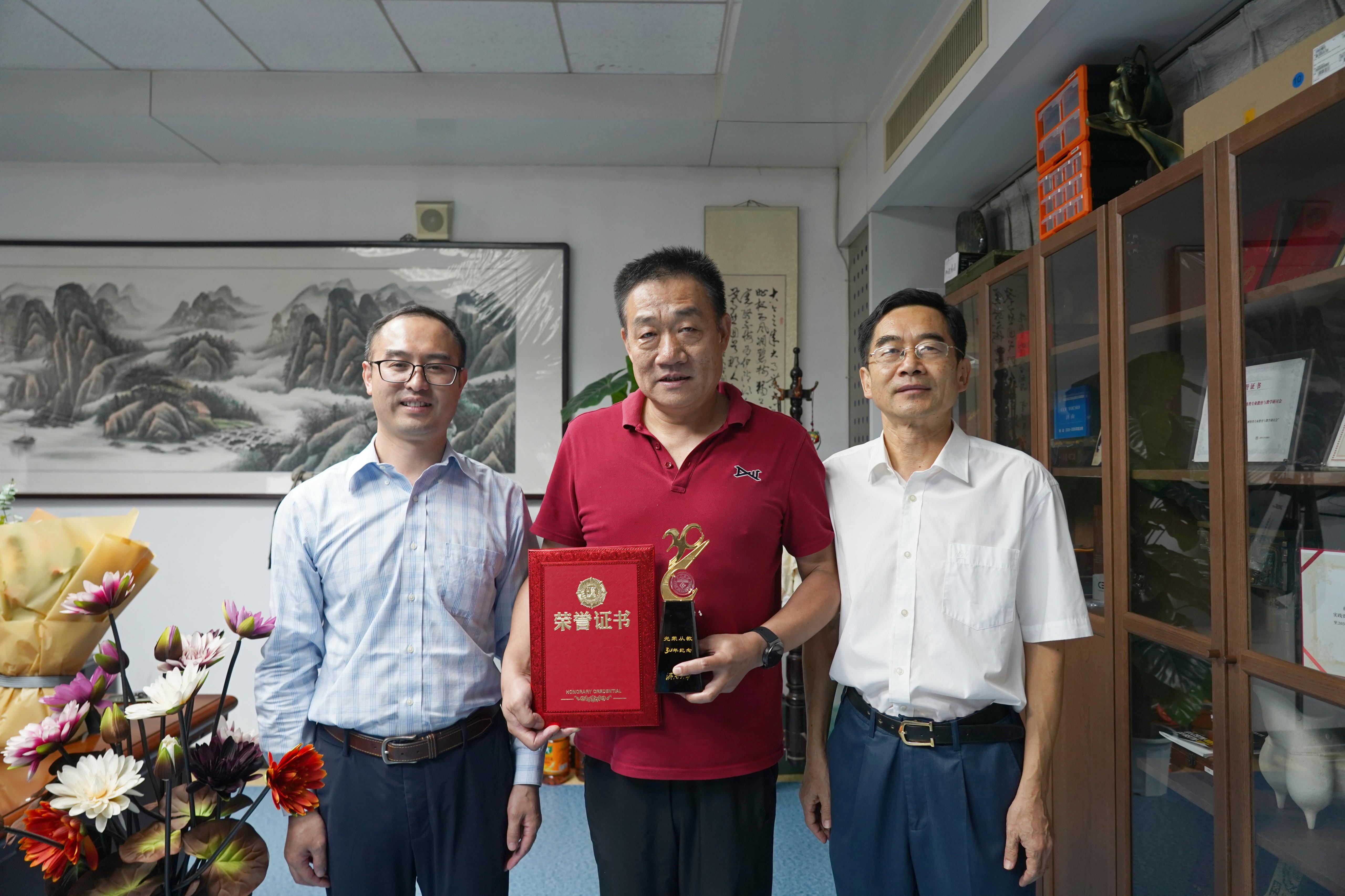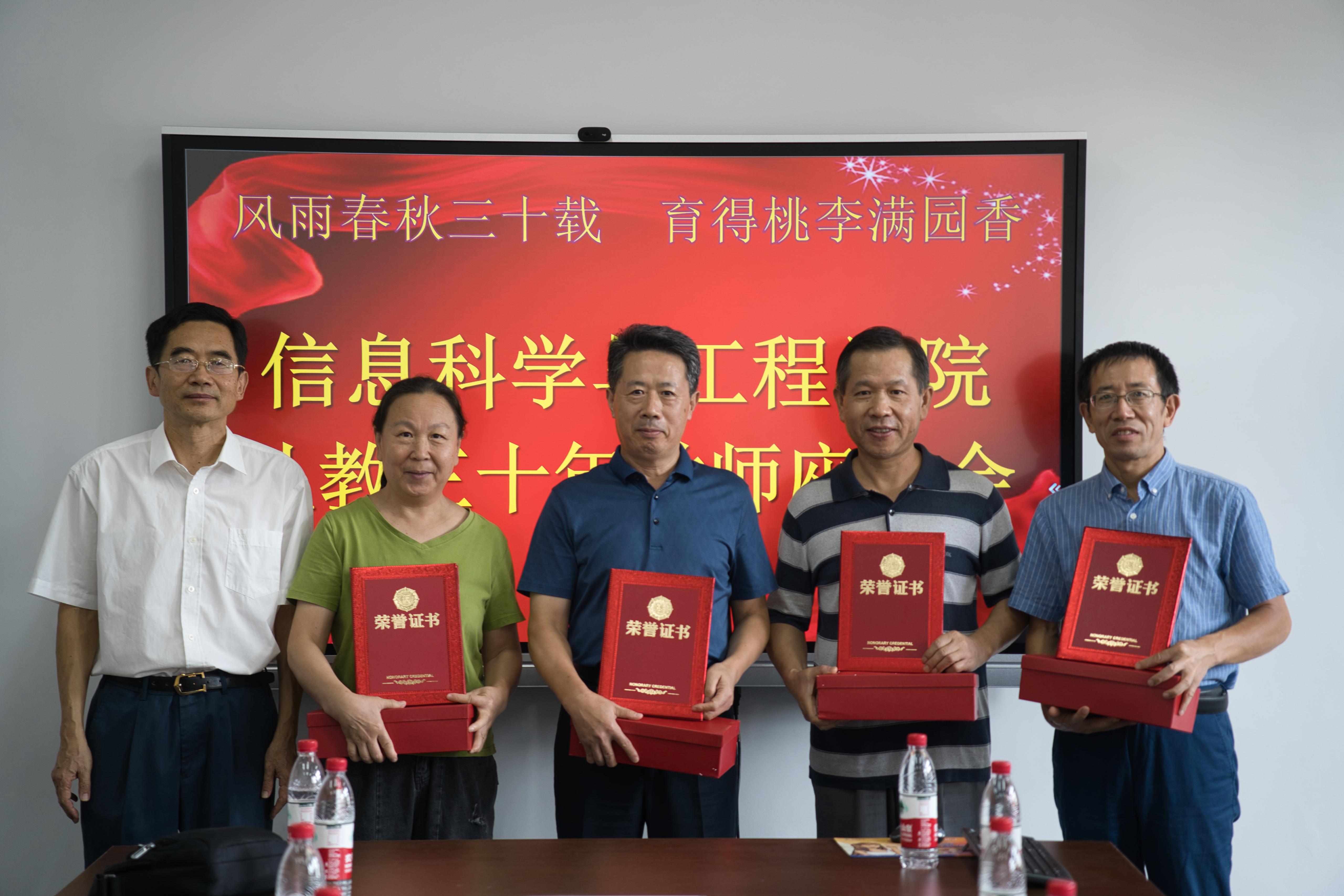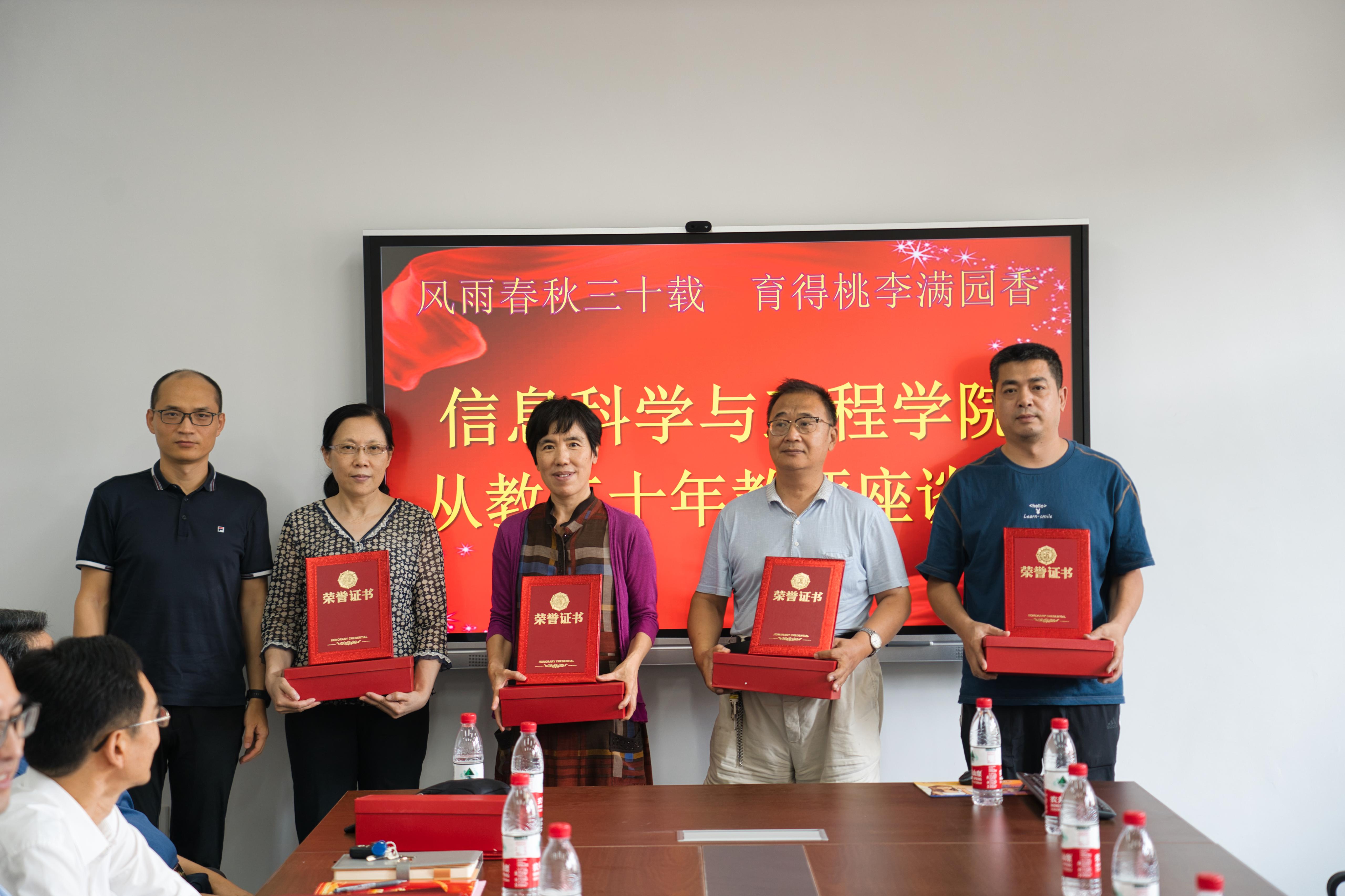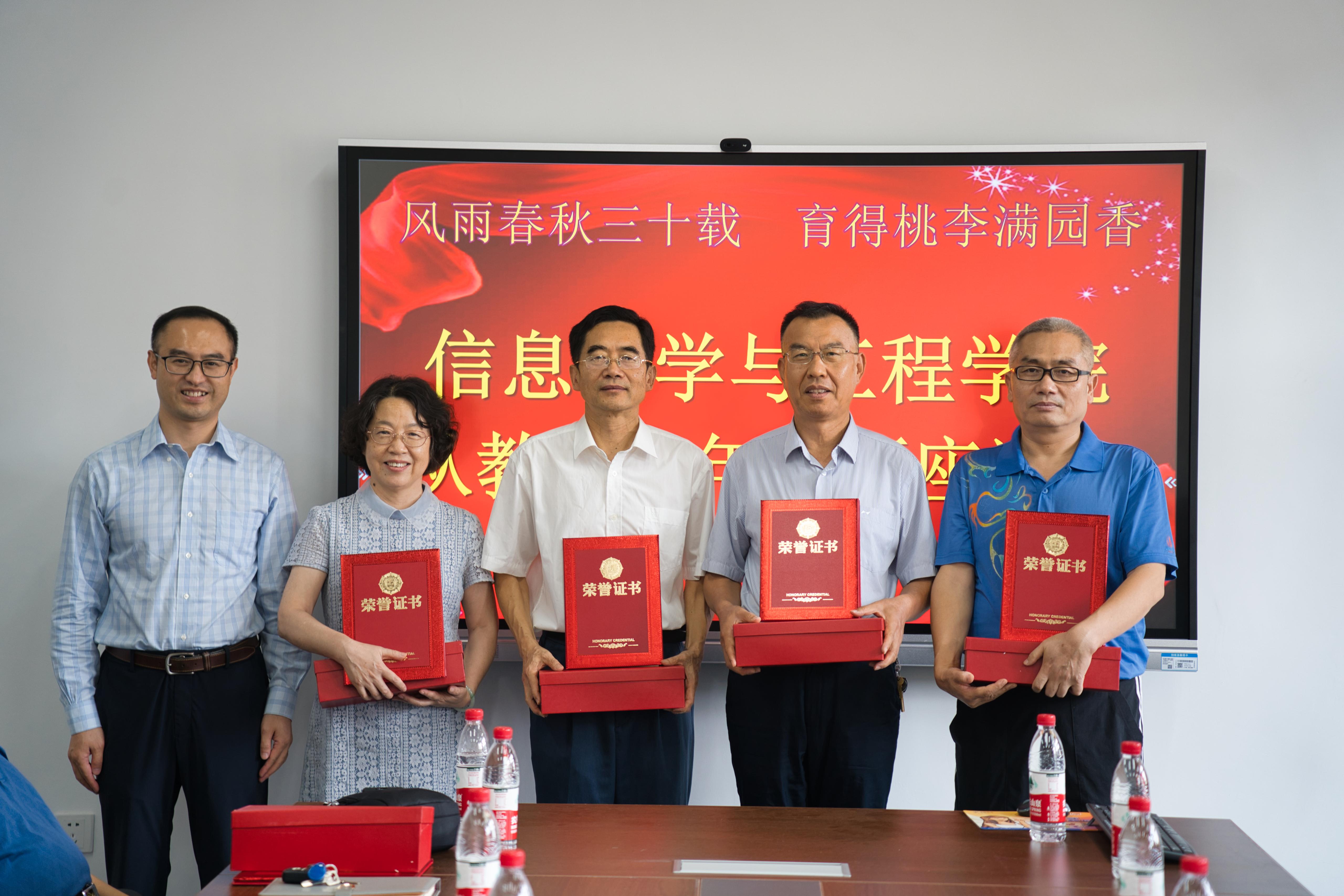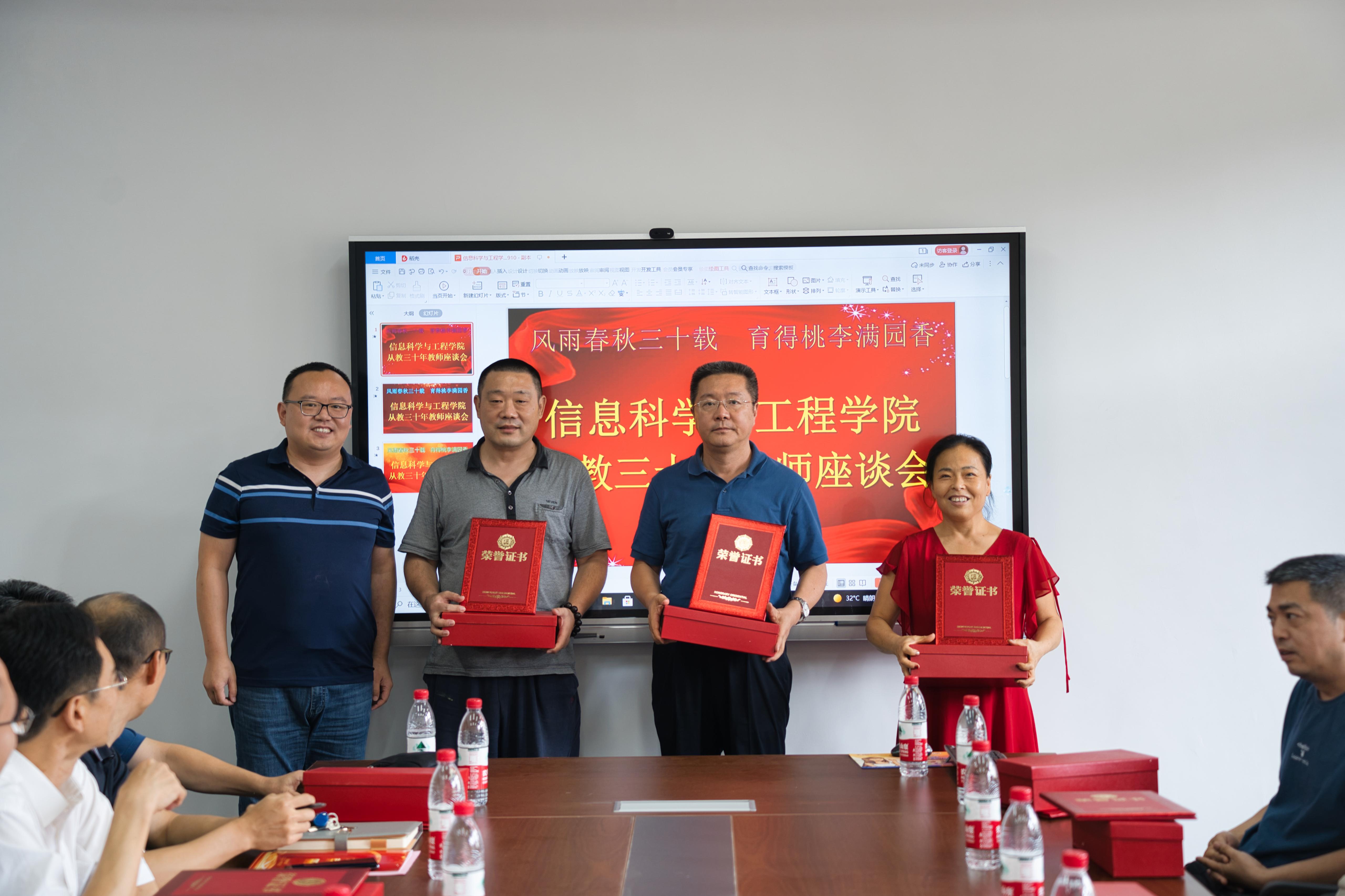座谈会上,学院党政领导班子为到场的15位教师颁发“从教三十年”证书和纪念奖杯,并同大家合影留念。
