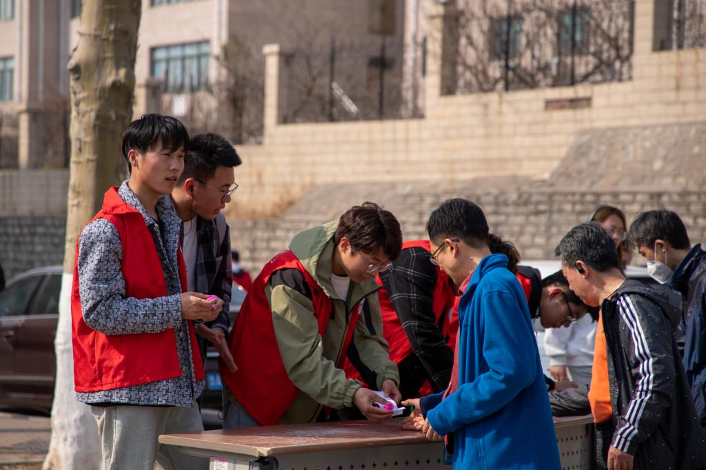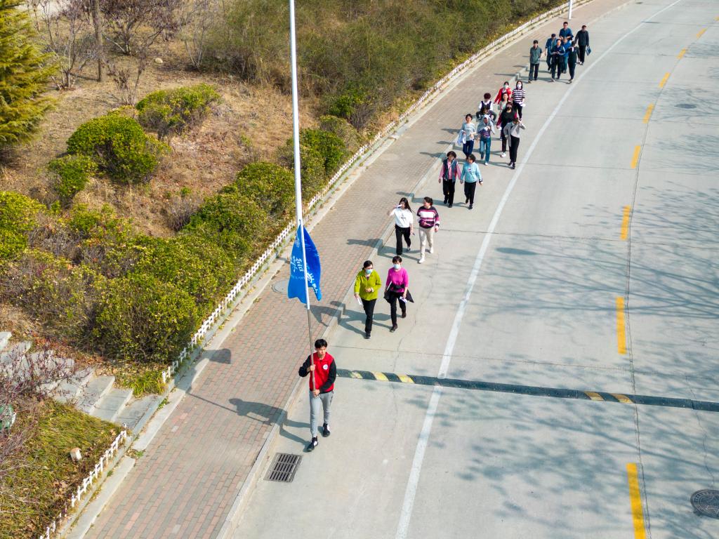 活动伊始,参与活动的教职工在学院南门合影留念。之后,以系部为单位从学院南门出发,途经济大高速、国交学院北、二食堂、八食堂、大学路十教以南、升华广场前、机械学院,最终回到学院北门。活动沿途设置六个打卡点,集齐六枚印章签到打卡,增强了活动的趣味性。在活动过程中,学院教职工们精神焕发,英姿飒爽,步伐稳定而有力,他们相互鼓励和支持,在盎然的春天中大步向前,气氛融洽热烈,展现了学院教职工蓬勃进取的风采。