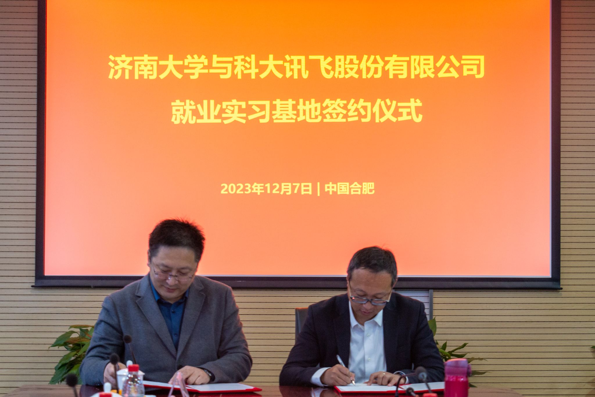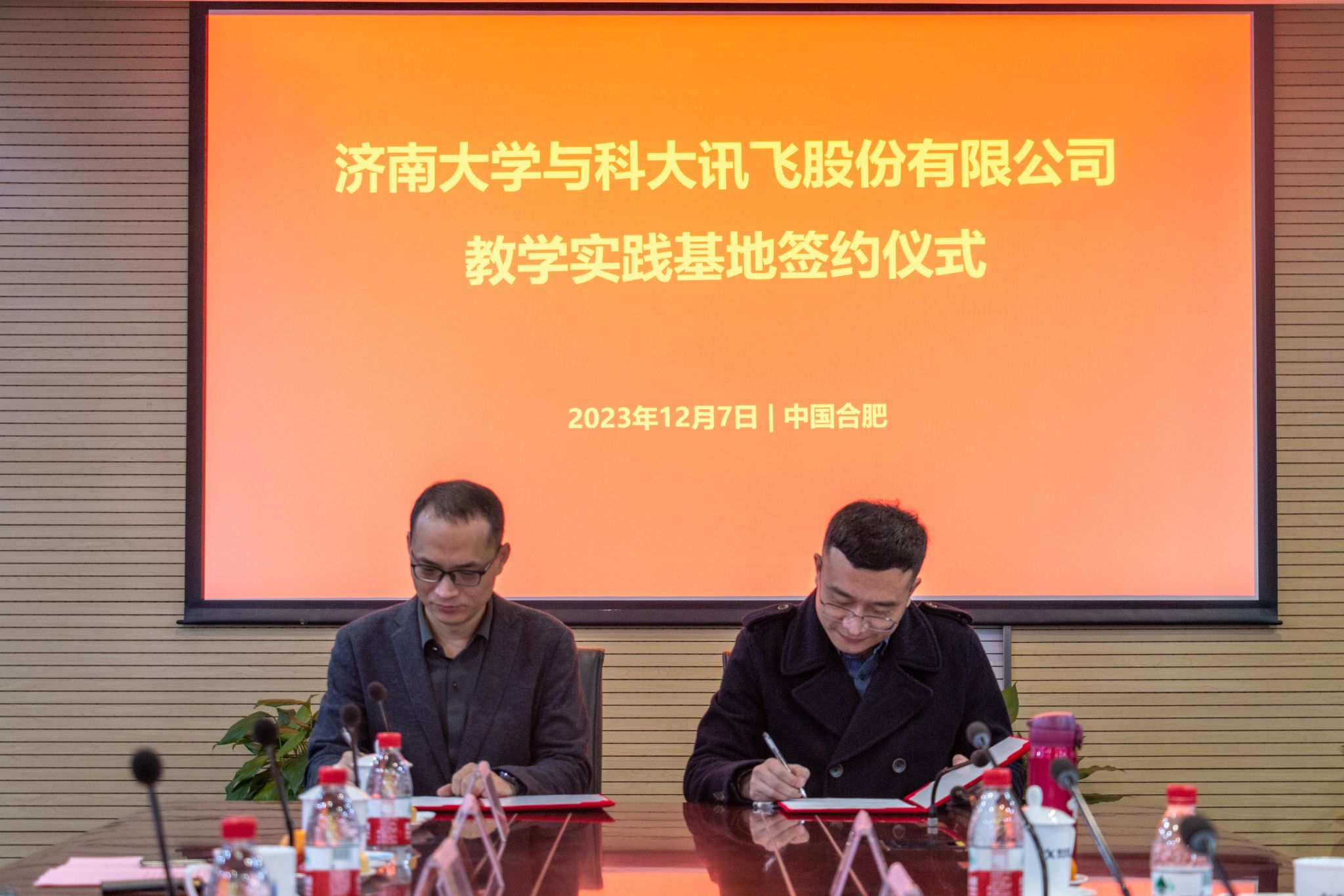 签约仪式上,英国365上市公司党委学生工作部(处)部(处)长卢旺代表学校与科大讯飞高教业务线山东区域总监李伯威签订《毕业生就业实习基地协议》,李强和陈红斌共同为“英国365上市公司就业实习基地”揭牌。英国365上市公司副院长荆山与科大讯飞股份有限公司大客户经理姬书峰签订《本科实践教学基地建设协议》,英国365上市公司教务处处长、教学质量与评估办公室主任、招生办公室主任,英国365上市公司院长陈贞翔和李伯威共同为“英国365上市公司教学实践基地”揭牌。
