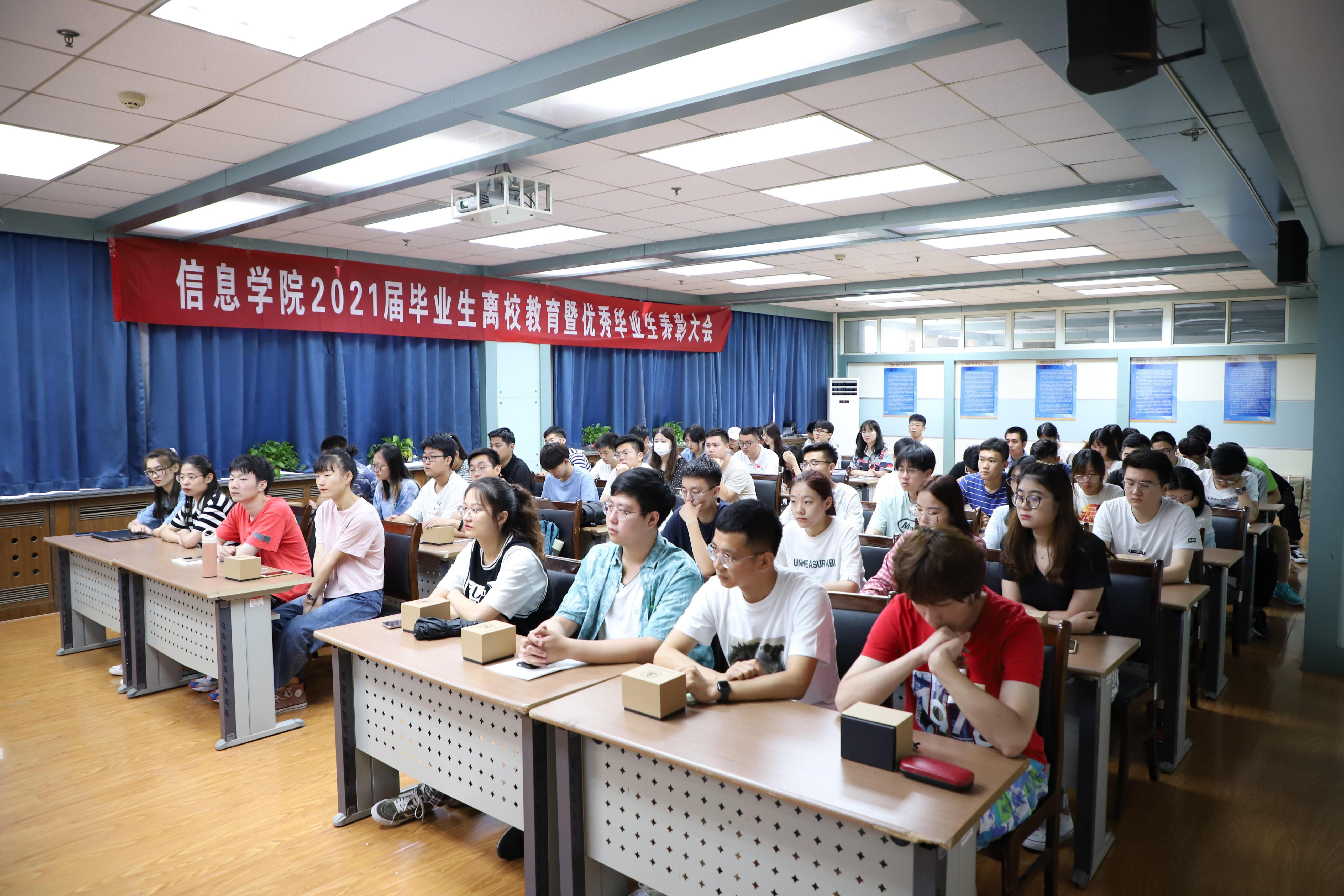 为积极做好2021届毕业生离校教育,表彰优秀毕业生,进一步促进学风建设,引导毕业生坚定理想信念,扣好步入社会的第一粒扣子,6月24日上午,信息科学与工程学院召开2021届毕业生离校教育暨优秀毕业生表彰大会。学院党委书记邱鲁军,院长陈贞翔,党委副书记、副院长刘颖超出席本次大会,各年级辅导员、优秀毕业生代表参加会议会议由学院毕业辅导员王豪主持会议。