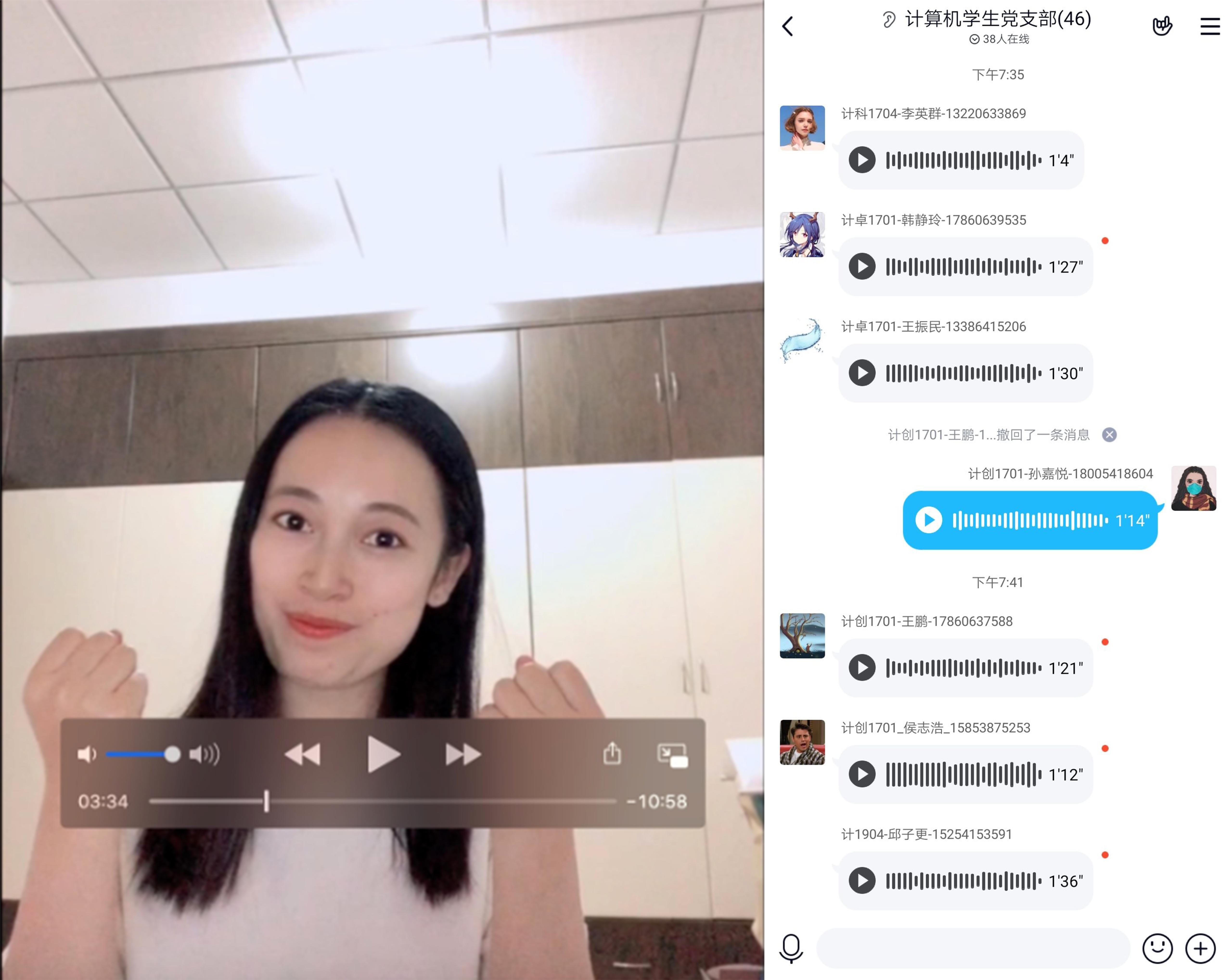 全体党员师生和入党积极分子在家里,认真收听收看并做笔记,同时积极参加线上互动讨论活动。整堂党课,内容丰富、针对性强,有很强的感染性和教育性。
