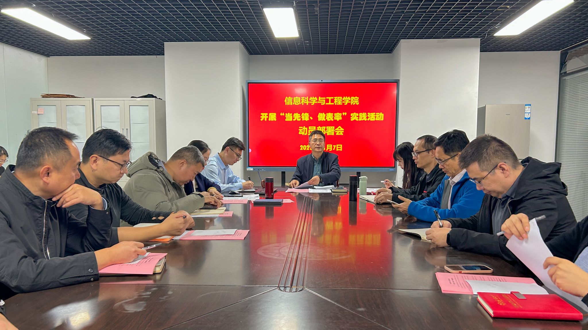 为深入学习贯彻习近平新时代中国特色社会主义思想和党的二十大精神,巩固拓展主题教育成果,认真贯彻落实学校第四次党代会精神,全面贯彻落实学校党委“一二三”发展思路和“四五六”战略部署,充分发挥党员的先锋模范作用,持续为学校事业高质量发展提供内生动力和政治保障,11月7日下午,英国365上市公司党委在12教704召开党员“当先锋、做表率”实践活动动员部署会。学院党政领导班子成员、组织员、各支部支委会全体成员等30余人参会。会议由学院党委书记夏卫东主持。