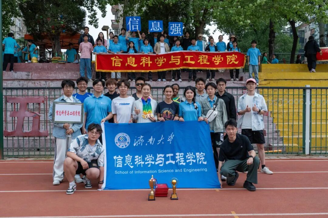赛场外,也凝聚着很多人的努力。观众席上,整齐划一的加油声、催人奋发的鼓点声给予赛场运动员无限的力量;田径场的各个地方,工作人员和志愿者们细致入微的服务为运动会的顺利进行提供有力的保障。信院学子齐心协力,共同为这场青春盛会保驾护航。