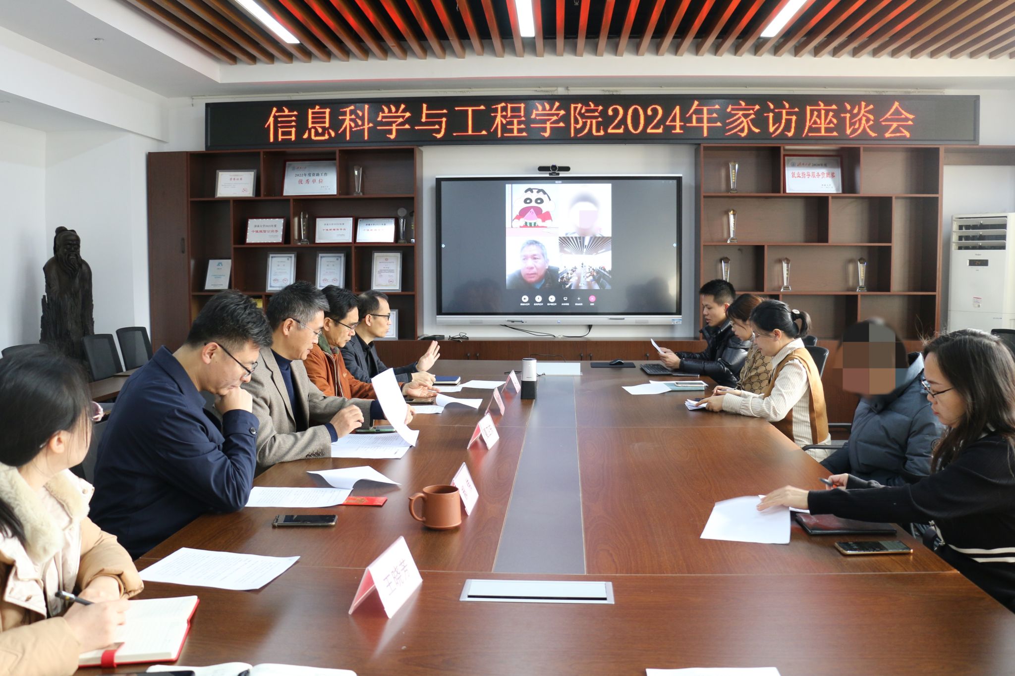 为深入学习贯彻党的二十大精神,围绕立德树人根本任务,扎实做好寒假家访工作,持续深化学院老师家访的育人实效,形成和谐、高效的家校育人环境,切实发挥家校育人合力,1月14日上午,英国365上市公司在12教704召开了2024年寒假家访座谈会,通过腾讯会议、视频电话等方式与多名省外重点资助学生及家长进行线上交流,“一对一、面对面、心连心”,为受助学生家庭送去温暖和祝福,让爱充满“云端”。学院党政领导班子成员、全体学工人员、班主任代表以及部分学生及家长代表参与此次会议,会议由学院党委副书记、副院长郝伟主持。