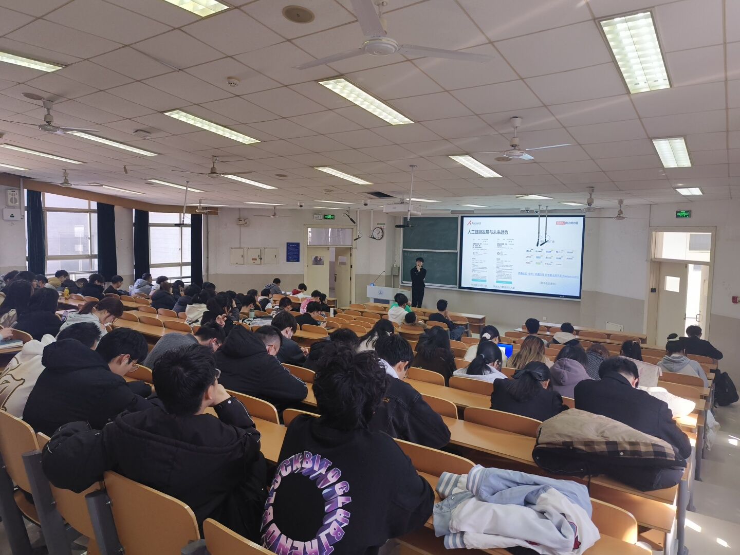 除了理论知识的讲解,讲座还特别展示了华为昇腾算力芯片在图像处理、模型训练等方面的优势和应用场景。这些实际案例让学生们更加直观地感受到人工智能技术的强大力量,激发了他们对未来科技发展的热情和探索欲望。