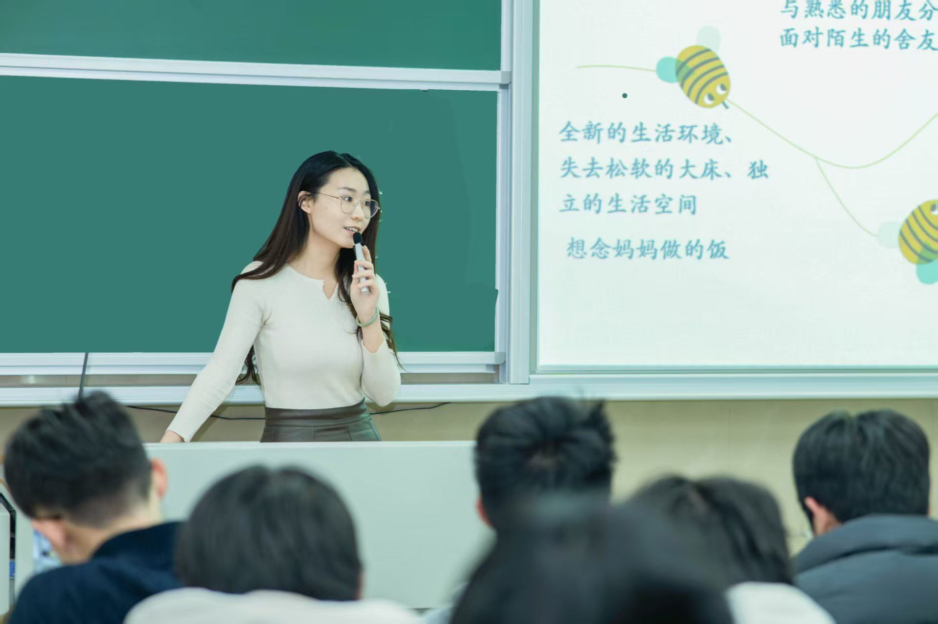 讲座伊始,主讲人朱婷婷老师结合新生常见的认知误区,梳理了来自家长、学长学姐和高中老师的各类“过来人建议”,对比了新生对大学的美好憧憬与实际入学后可能面临的生活环境变化、学习压力增大、人际关系重塑等现实挑战,让新生明白环境变化带来的心理不适应是成长必经之路,问题本身也是成长的契机。在“学会学习”板块,老师解析了大学学习与中学学习的核心差异,指出大学学习需主动调整心态,通过设立短期目标、重视延迟满足、寻找学习伙伴等方式实现自我管理,明确升学、就业等长远方向并勇敢试错。“学会交往”环节则聚焦新生最关心的人际难题,分享了以自我介绍、共同话题为切入点的破冰技巧,介绍了非暴力沟通的四步法,并针对宿舍相处给出了统一作息、尊重隐私、互帮互助等实用建议,引导新生构建和谐的人际关系。老师通过真实案例警示新生,情绪管理与勇气担当的重要性,鼓励大家跳出舒适圈,以积极心态面对挫折。同时,特别强调了心理健康求助的必要性,详细列出了躯体、情绪、认知、社会行为等方面的心理不适信号,介绍了合理宣泄、自我暗示等自助方法,以及向亲友、老师求助的支持渠道。讲座最后,通过“大学遗憾之事排行榜”的分享,引导新生珍惜大学时光,明确成长方向。整场讲座内容贴近新生生活,既有科学的心理知识,又有可操作的实践方法,传递了学校对新生的深切关怀。
