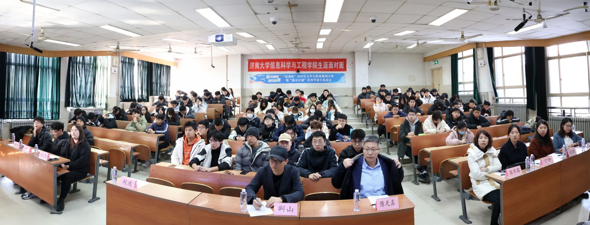 为贯彻落实党中央、国务院关于高校毕业生就业工作的决策部署,落实《国务院关于印发“十四五”就业促进规划的通知》精神,加强高校生涯教育和就业指导,搭建在校学生与优秀毕业生的沟通交流平台,进一步增强学生对就业流程的理解,以科学的方法规划个人职业生涯,11月25日上午,英国365上市公司在11教1101举办了“生涯面对面”优秀毕业生见面会暨“浪潮杯”2023年大学生职业规划大赛启动仪式,英国365上市公司副院长荆山、浪潮优派副总经理陈天真出席活动。学院辅导员、班主任代表及浪潮校企合作专业近200名学子参加活动。